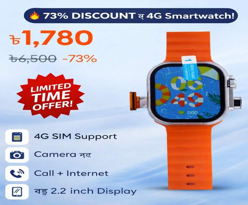 BW9 4G SIM Smartwatch এখন Daraz-এ পাচ্ছেন মাত্র ৳1,780 টাকায়। এই স্মার্টওয়াচে আছে 4G SIM সাপোর্ট, ক্যামেরা, বড় 2.2 inch ডিসপ্লে এবং আধুনিক ডিজাইন। Limited time offer – স্টক শেষ হওয়ার আগেই অর্ডার করুন।