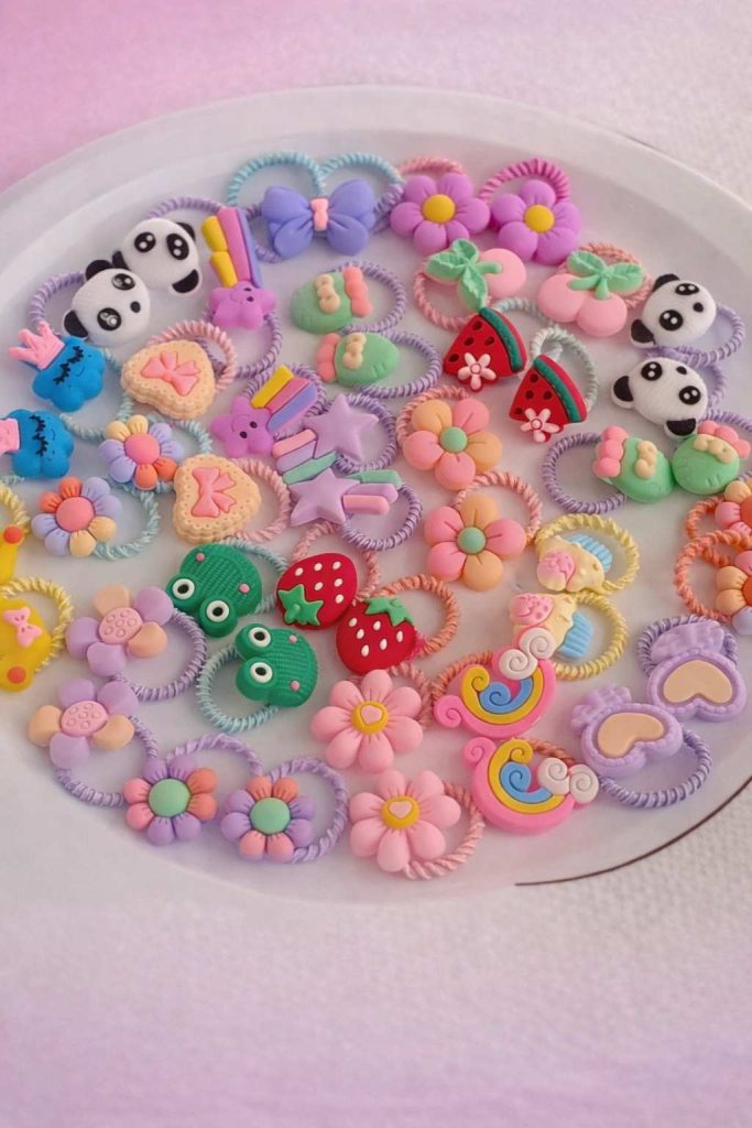 এটি মেয়েদের জন্য বিশেষভাবে তৈরি একটি হেয়ার অ্যাক্সেসরিজ সেট, যেখানে মোট ২০টি ভিন্ন ডিজাইন ও রঙের ইলাস্টিক হেয়ার ব্যান্ড রয়েছে। ফুল, ফল, কার্টুন ও কিউট শেপ ডিজাইনের কারণে এগুলো শিশুদের কাছে খুব জনপ্রিয়। চুল বাঁধার সময় চুল টানে না এবং দীর্ঘ সময় ব্যবহারেও আরামদায়ক।